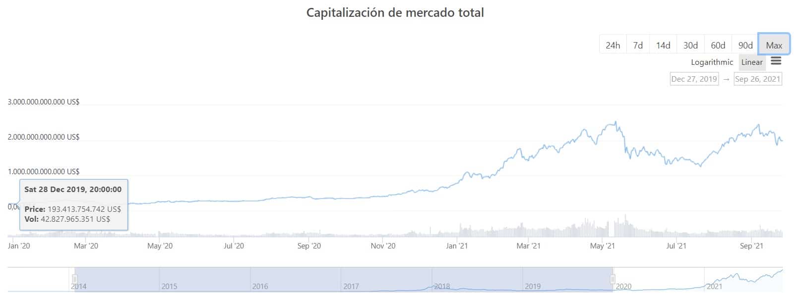 Tan solo hace seis meses, la capitalización total del mercado había llegado a la marca de los USD 2 billones. Según los datos que revela CoinGecko, la inversión global en las criptomonedas ha crecido casi 3.000% durante los últimos dos años. Aunque hay dos activos que continúan destacándose del resto por reunir casi todos los fondos: bitcoin (BTC) y ether (ETH).
