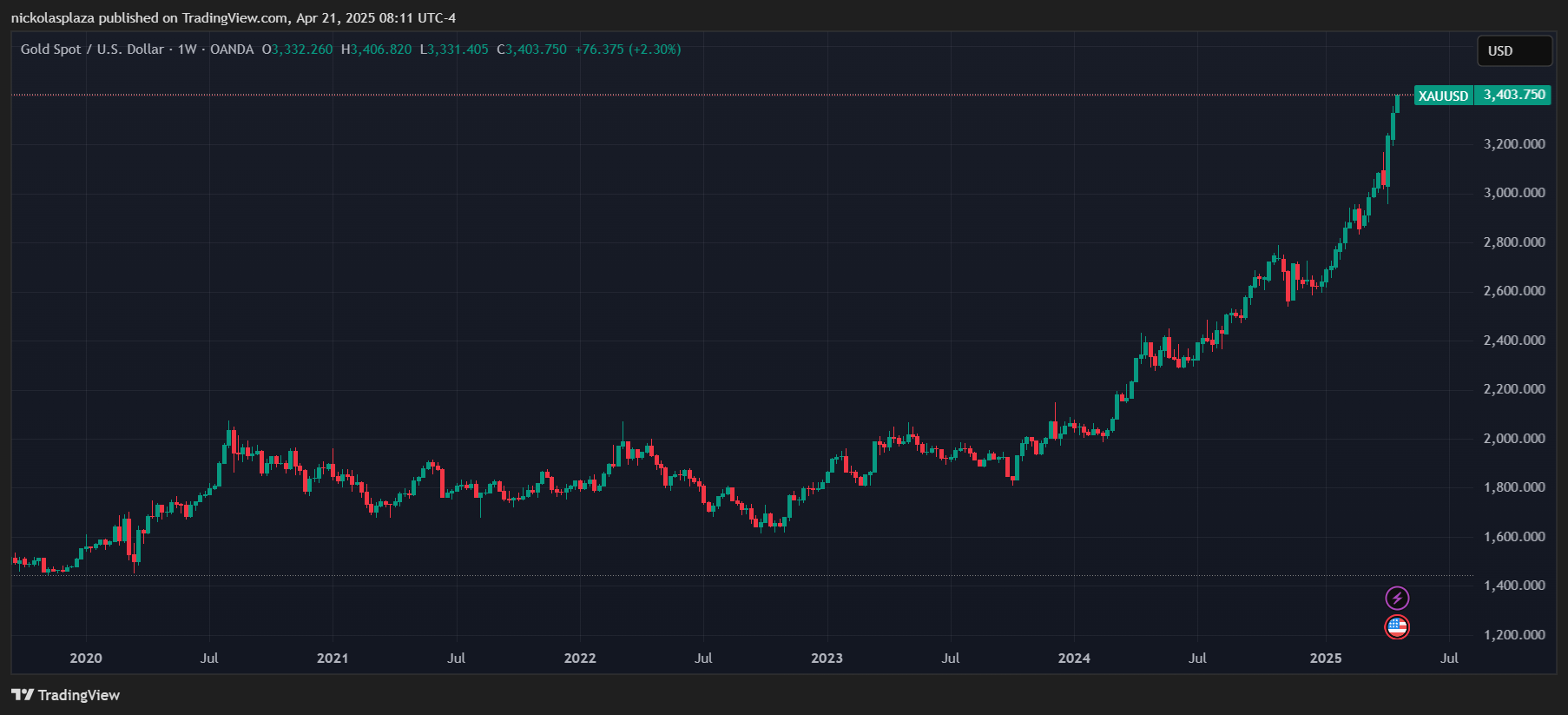 El oro ha marcado un hito al registrar nuevos máximos históricos, con su precio situándose en 3.400 dólares por onza.