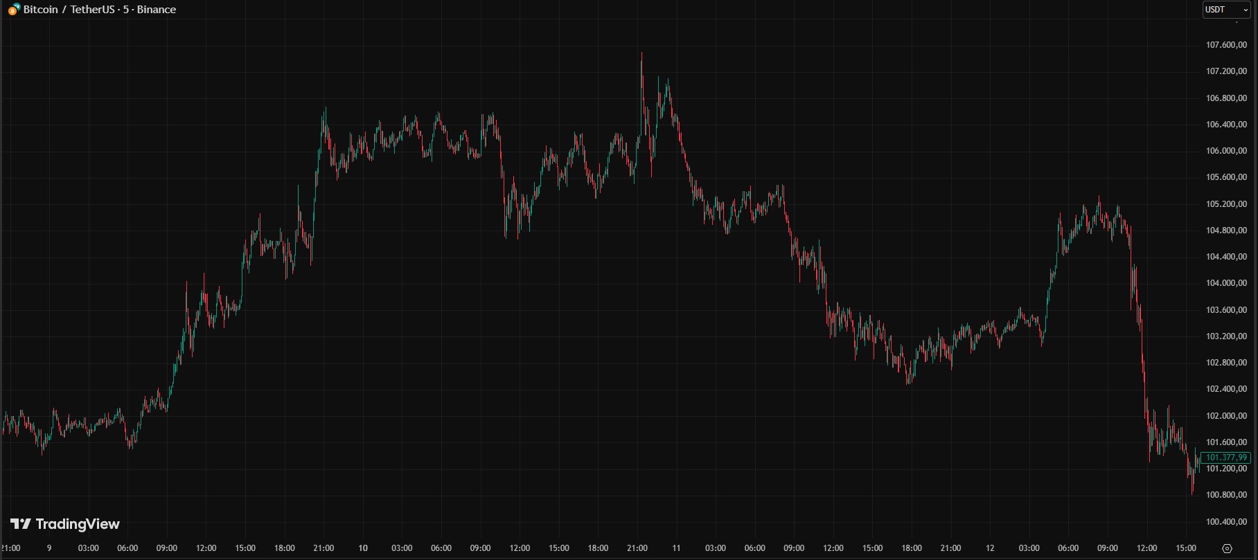 Bitcoin, por su parte, experimentó una caída aún más pronunciada. El gráfico muestra un desplome acelerado hasta niveles cercanos a USD 100.000, borrando el avance que mantenía desde la primera semana de septiembre.