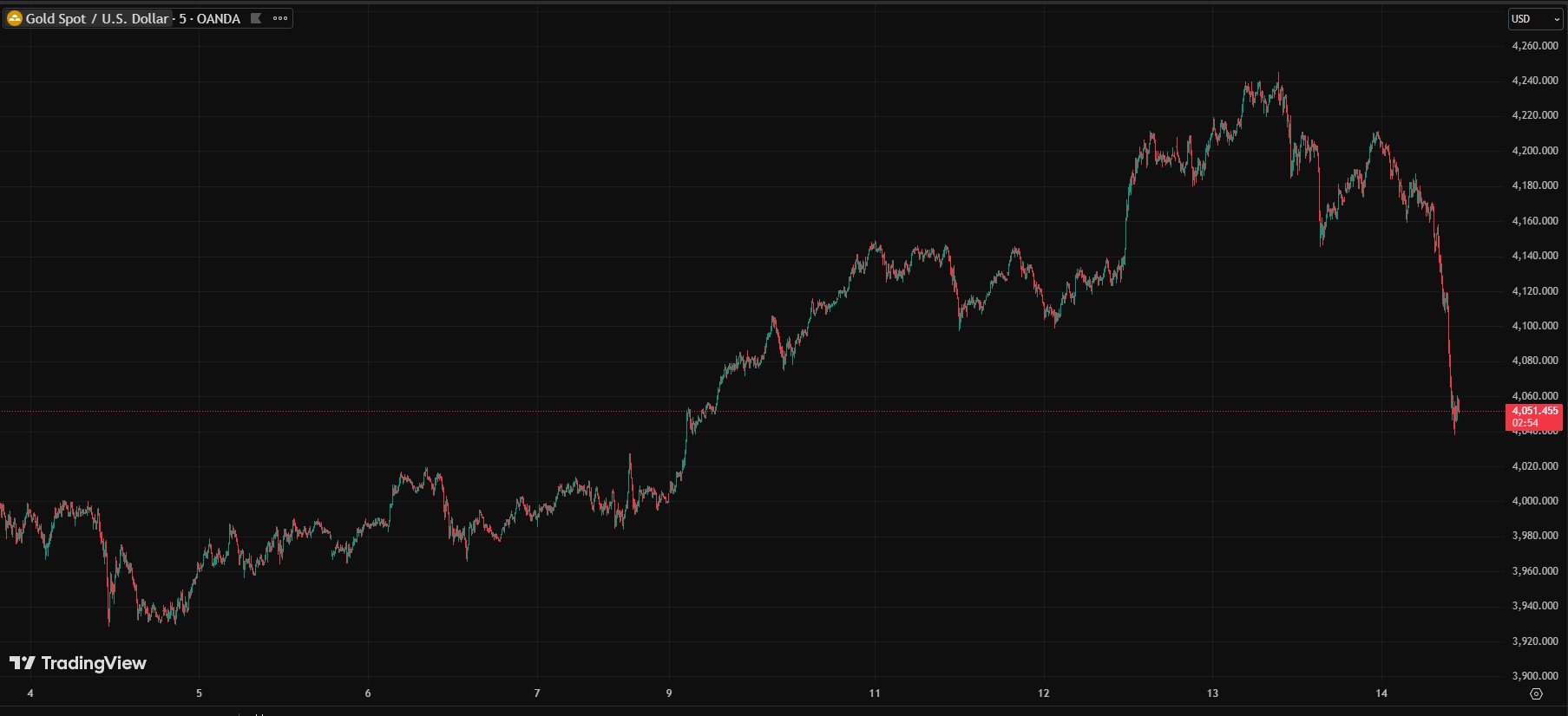 El oro perdió toda la ganancia acumulada desde el 9 de septiembre y está sobre los USD 4.000.