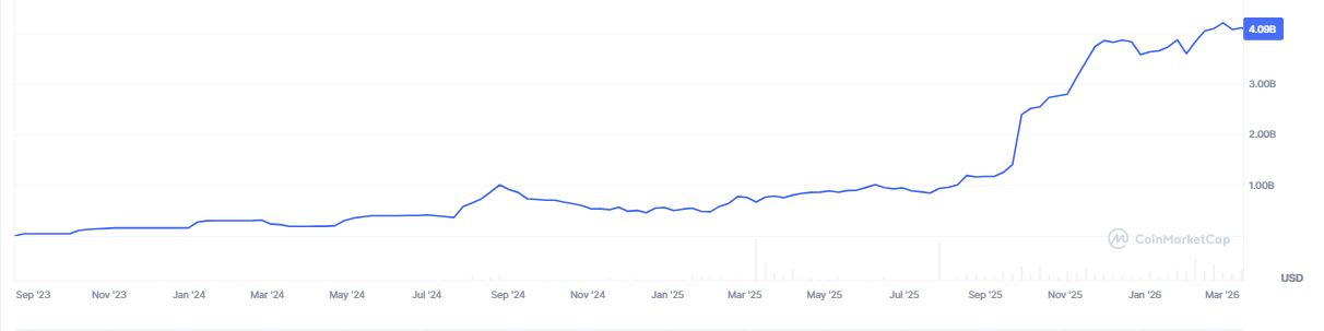 La capitalización de mercado de PYUSD alcanza los 4.098 millones de dólares, tras haber aumentado significativamente desde su lanzamiento en 2023.