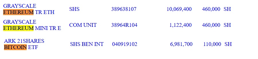 En el รกmbito de bitcoin, el fondo de Michigan reportรณ una tenencia de 110.000 acciones del ETF de Ark 21Shares, valoradas en alrededor de USD 6,9 millones.