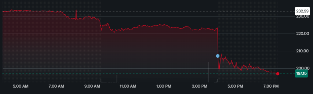 Según The Kobeissi Letter, la caída del precio de la acción de Amazon se debe a la publicación de su último reporte de ingresos, correspondiente al último cuarto del 2025. En un día, la acción cayó de los 230 a los 200 dólares.