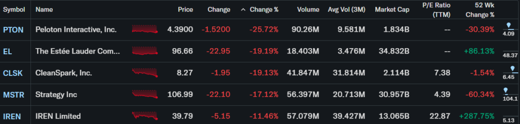 Cuando se escribe esta nota, la lista de perdedores en bolsa está repleta de empresas públicas de bitcoin y criptomonedas tras la caída del precio de bitcoin.