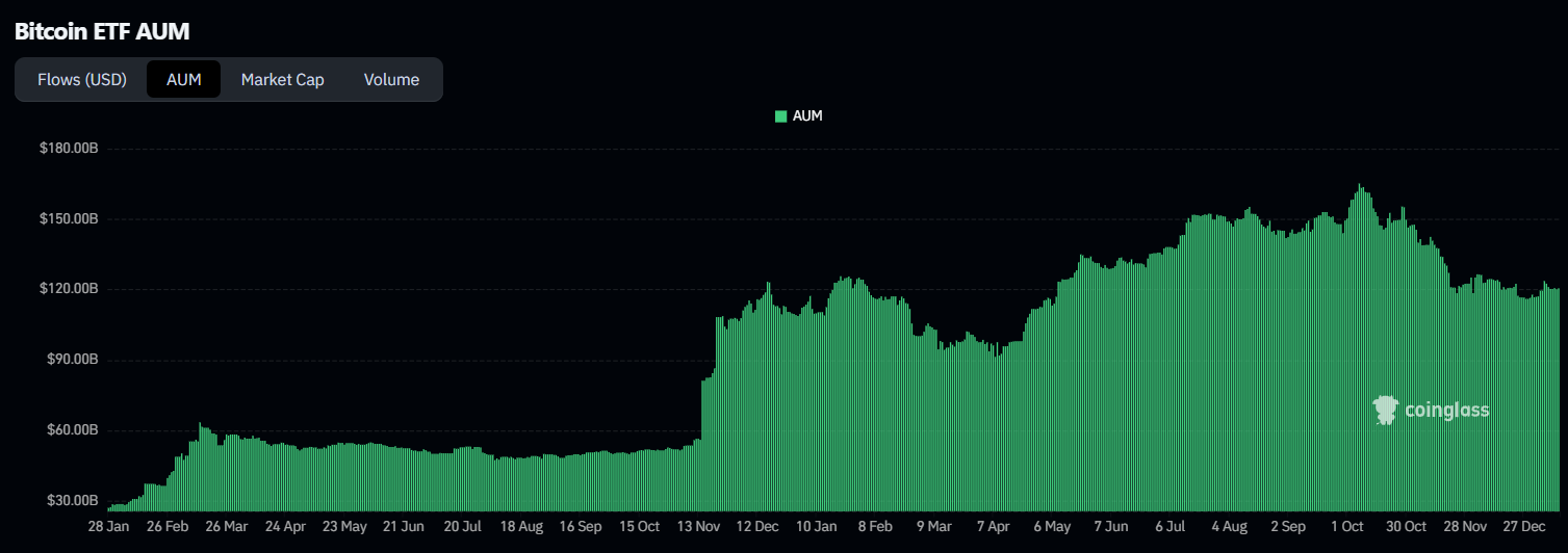 Los datos en parte respaldan este argumento. Aunque los ETF al contado de bitcoin mantienen actualmente más de 120.000 millones de dólares en activos bajo gestión, han registrado un descenso en los últimos tres meses. Esto refleja que no todos mantienen el hodling.