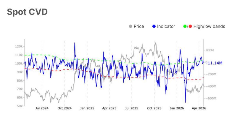 Sin embargo, esa lectura convive con indicadores que apuntan en sentido contrario. Uno de los que destacan los analistas de Glassnode es el delta acumulado de volumen (CVD), que muestra un giro hacia el lado vendedor.