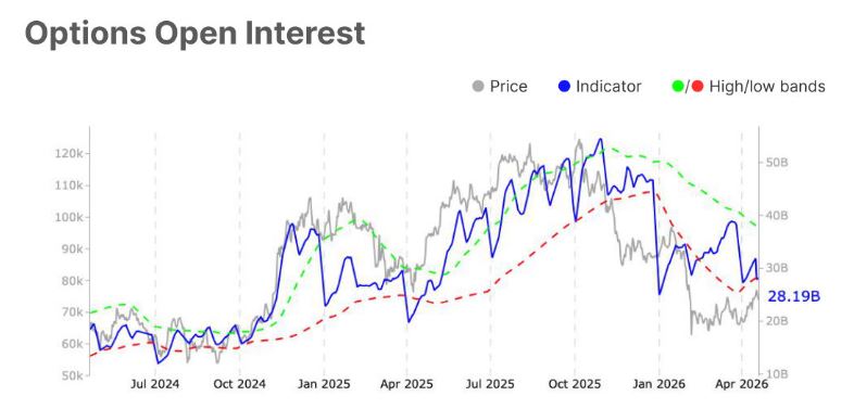 Por su parte, el mercado de opciones aporta otra señal relevante. El interés abierto (open interest), que mide el total de contratos de opciones activos que aún no han sido cerrados, cayó a 28.200 millones de dólares.
