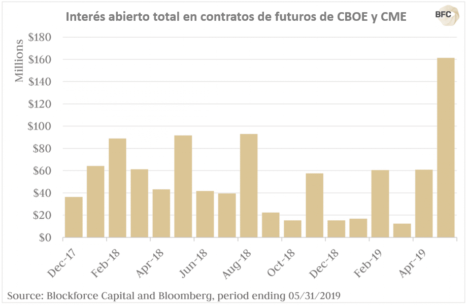 Sin embargo, David Martin, Director de Inversiones de Blockforce Capital de EE. UU., seรฑalรณ que para que los contratos de futuros tengan รฉxito en el largo plazo, deben atraer un interรฉs continuo. Entre abril y mayo, ยซha habido un aumento sustancial de 165 % en la participaciรณn abierta en los contratos de futuros de CME y CBOEยป, enfatizรณ, citando datos de Blockforce y Bloomberg.