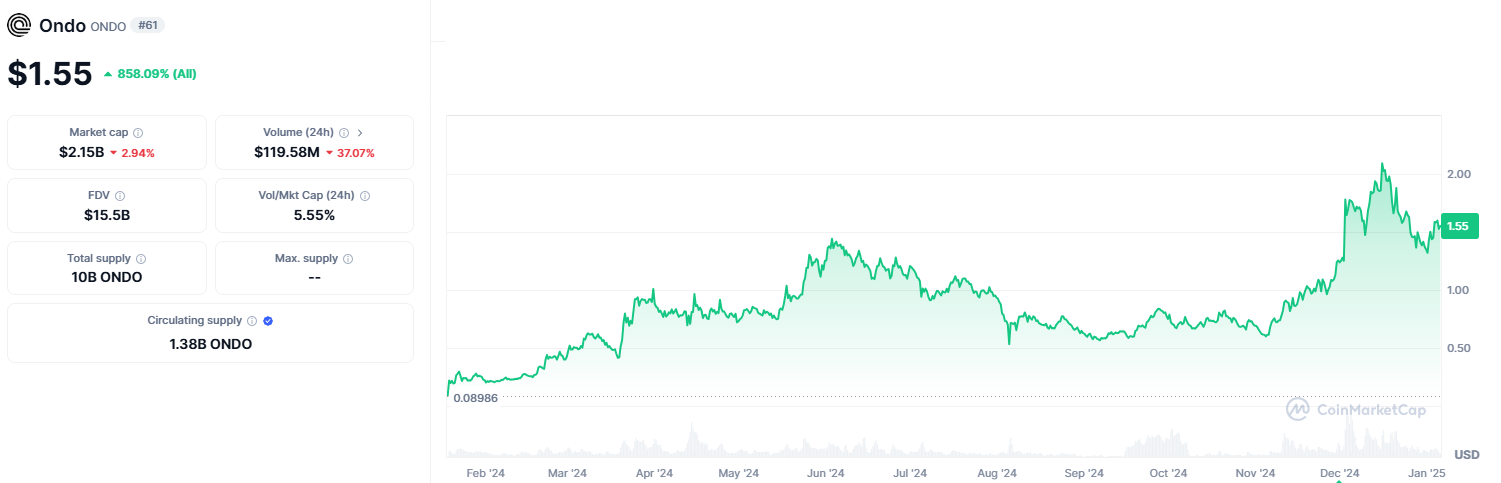 Ondo Finance se especializa en la tokenización de activos del mundo real (RWA).