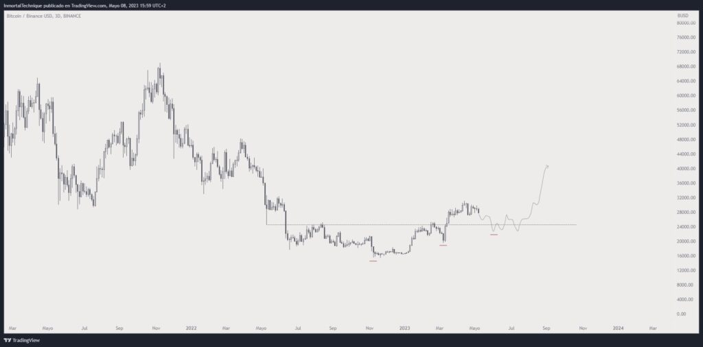 Por otra parte, el trader que se identifica como Inmortalcrypto comentรณ que los USD 25.000 estรกn sobre la mesa. Como muestra en el grรกfico, tal cifra ha funcionado como una fuerte resistencia (precio mรกximo) a inicios de este aรฑo y a mediados del aรฑo pasado.