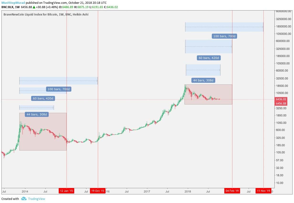 Mientras tanto, en octubre de 2018, los analistas predijeron que la situación que regía el criptomercado entre 2014 y 2016 se repetirá entre 2018 y 2020. Sólo un mes después, en noviembre, llegó la caída del precio, reflejando aquella de 2014. Si las similitudes entre los dos períodos persisten, es posible que el BTC se reduzca aún más, alcanzando el valor de $ 2.800 en el primer trimestre de 2019, según el pronóstico del 15 de noviembre.