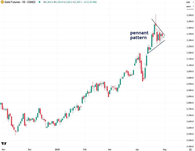 “La semana pasada, el oro se encontraba técnicamente sobrecomprado a corto plazo, lo que justifica cierta cautela. Sin embargo, es importante recordar que los movimientos alcistas más explosivos suelen ocurrir cuando un activo ya está sobrecomprado y cuenta con un fuerte impulso. Si el oro puede confirmar su fortaleza rompiendo su banderín hacia arriba, no me sorprendería verlo subir hacia los 4.000 dólares con bastante rapidez, según las técnicas de medición de patrones de banderín establecidas”.