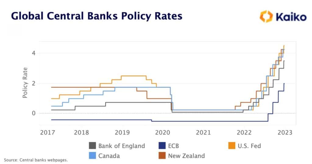 Sin embargo, espera que la Fed (Reserva Federal de Estados Unidos) y otros bancos centrales desaceleren el ritmo de las alzas de tasas en 2023. Y cree que ello tal vez proporcionarรญa ยซun respiro para los activos de riesgoยป, lo que incluye a bitcoin y el mercado de criptomonedas.