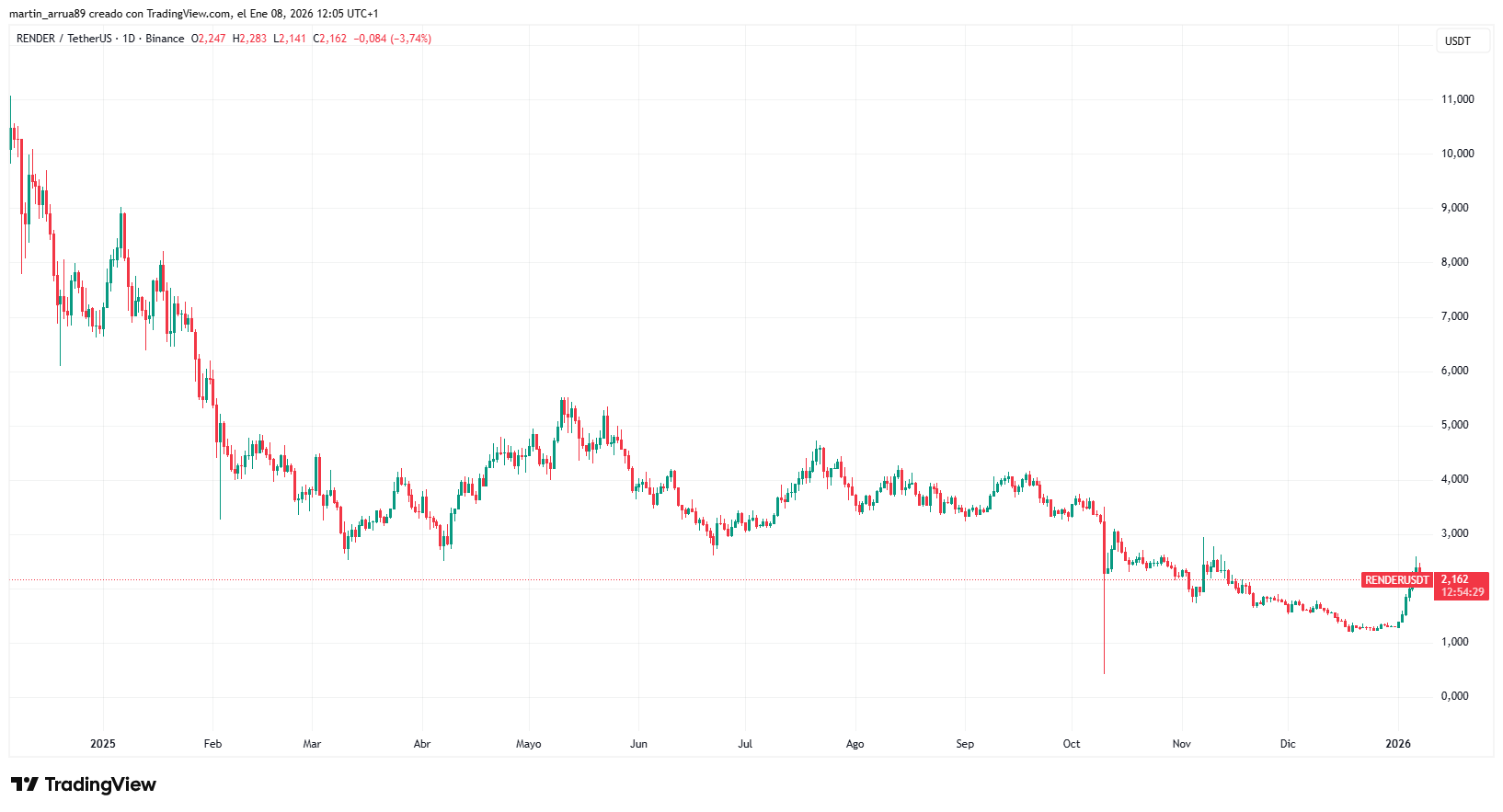 Tras un 2025 negativo para render, podrรญa estar comenzando el repunte de su precio.
