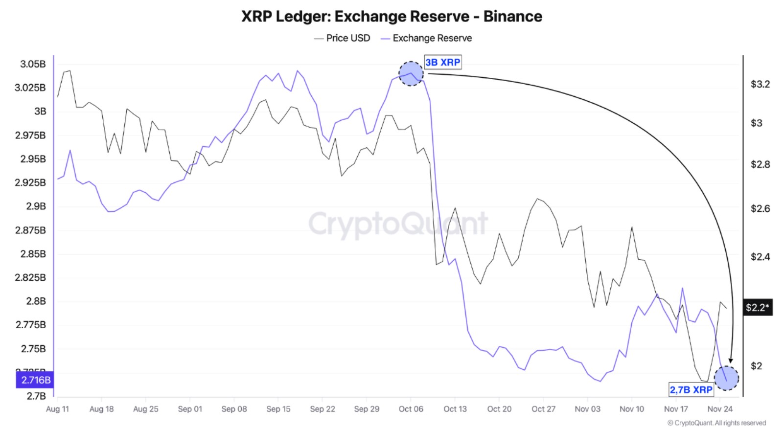 Las reservas de XRP en Binance han caído a 2.700 millones de unidades.