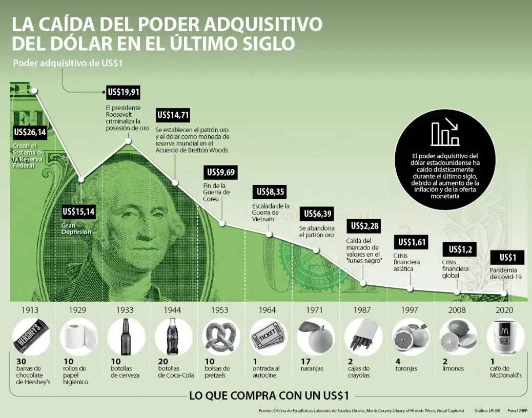 Aunque es una clásica recomendación de asesores financieros, para Kiyosaki “esa relación tonta murió en 1971, el año en que [el presidente de Estados Unidos] Nixon sacó al dólar del patrón oro”.