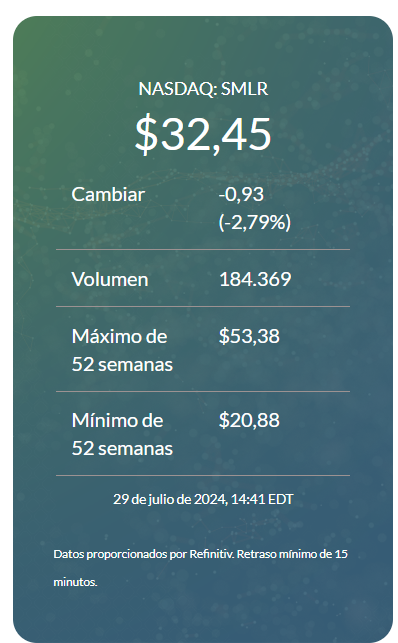 En la jornada actual, SMLR está cotizando en 32 dólares por acción, lo que representa un incremento de 45%, desde que adoptaron BTC.