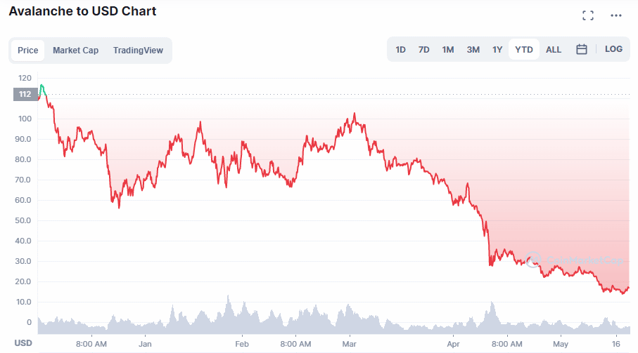 Avalanche es el activo número 16 entre los más valiosos en el mercado de criptomonedas, a pesar de ese panorama desolador. Su capitalización total roza los 5.000 millones de dólares, mientras los comerciantes han movido casi 580 millones de dólares en AVAX en las últimas 24 horas.