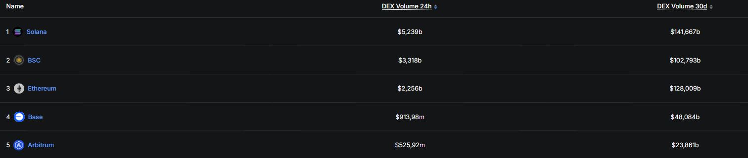 La red Solana ha desplazado a Ethereum en el dominio de las finanzas descentralizadas (DeFi), registrando 141.667 millones de dólares en volumen de trading en los últimos 30 días.