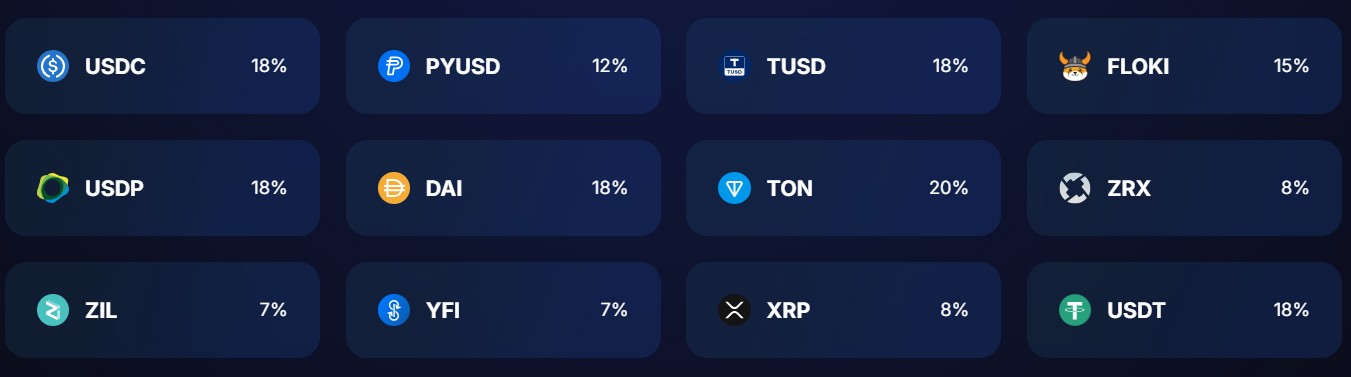 Otra clara muestra de plataformas de criptomonedas que ofrecen rendimientos atractivos es YouHodler, con sede principal en Suiza. Su objetivo es conectar las finanzas tradicionales con el mundo de los activos digitales, ofreciendo servicios para que los usuarios puedan mantener, usar, prestar y ganar con sus criptoactivos. A continuación se muestran las tasas de interés que ofrece para varias stablecoins.