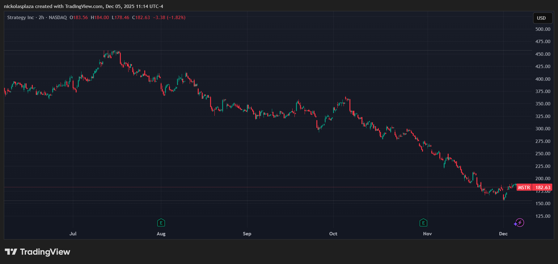 El mercado se mantiene en vilo ante las recientes fluctuaciones de las acciones de Strategy (MSTR), la compañía cotizada en bolsa que posee la mayor cantidad de bitcoin (BTC) en su tesorería.