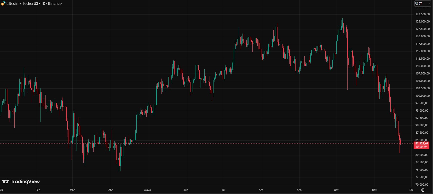 Efectivamente, bitcoin ha experimentado una tendencia descendente sostenida desde octubre, la cual se ha exacerbado desde que inició noviembre. Esto ha reforzado la presión sobre los tenedores de corto plazo.