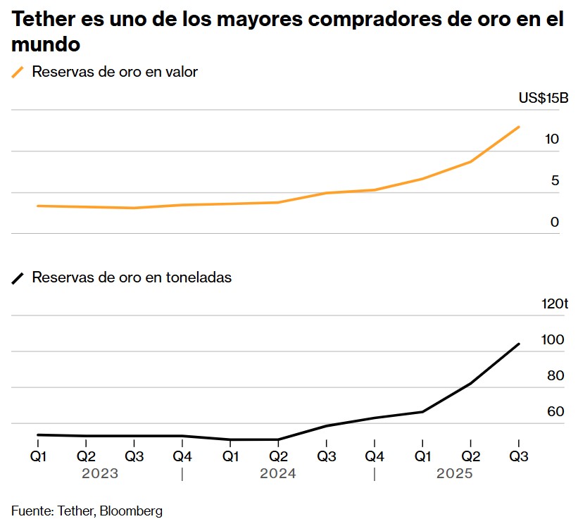 Adicionalmente, la empresa, con una ganancia esperada de unos 15.000 millones de dólares este año, utiliza el oro para respaldar su producto tokenizado Tether Gold (XAUT). Como reportó CriptoNoticia, esta acumulación ya ha posicionado a la entidad por encima de las reservas soberanas de más de una treintena de países, incluyendo naciones como Paraguay, Colombia, El Salvador y Chile.
