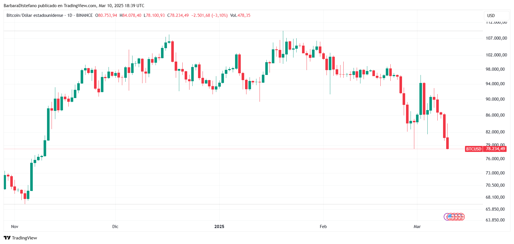 El precio de BTC decayó de los USD 80.000.