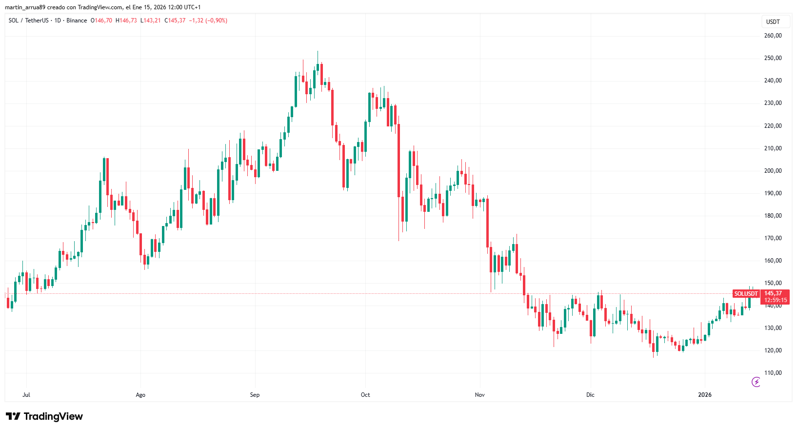 En conclusión, SOL sigue mostrando un escenario mixto. En el corto plazo, el precio se mantiene en una zona de riesgo y sin confirmaciones claras de cambio de tendencia.