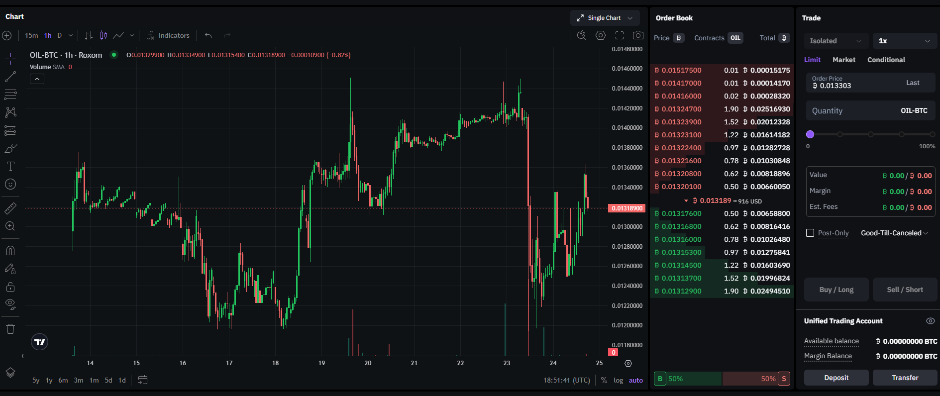 La plataforma de derivados Roxom habilitó el comercio de un futuro perpetuo de petróleo (OIL), un instrumento financiero que permite negociar el precio del crudo West Texas Intermediate (WTI) utilizando bitcoin (BTC) como unidad de cuenta y colateral.