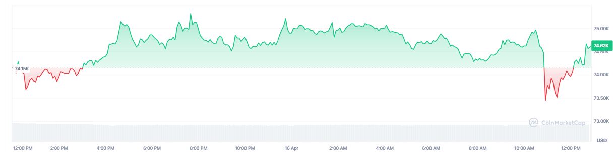 Bitcoin se mantiene por encima de los 74.000 dólares.