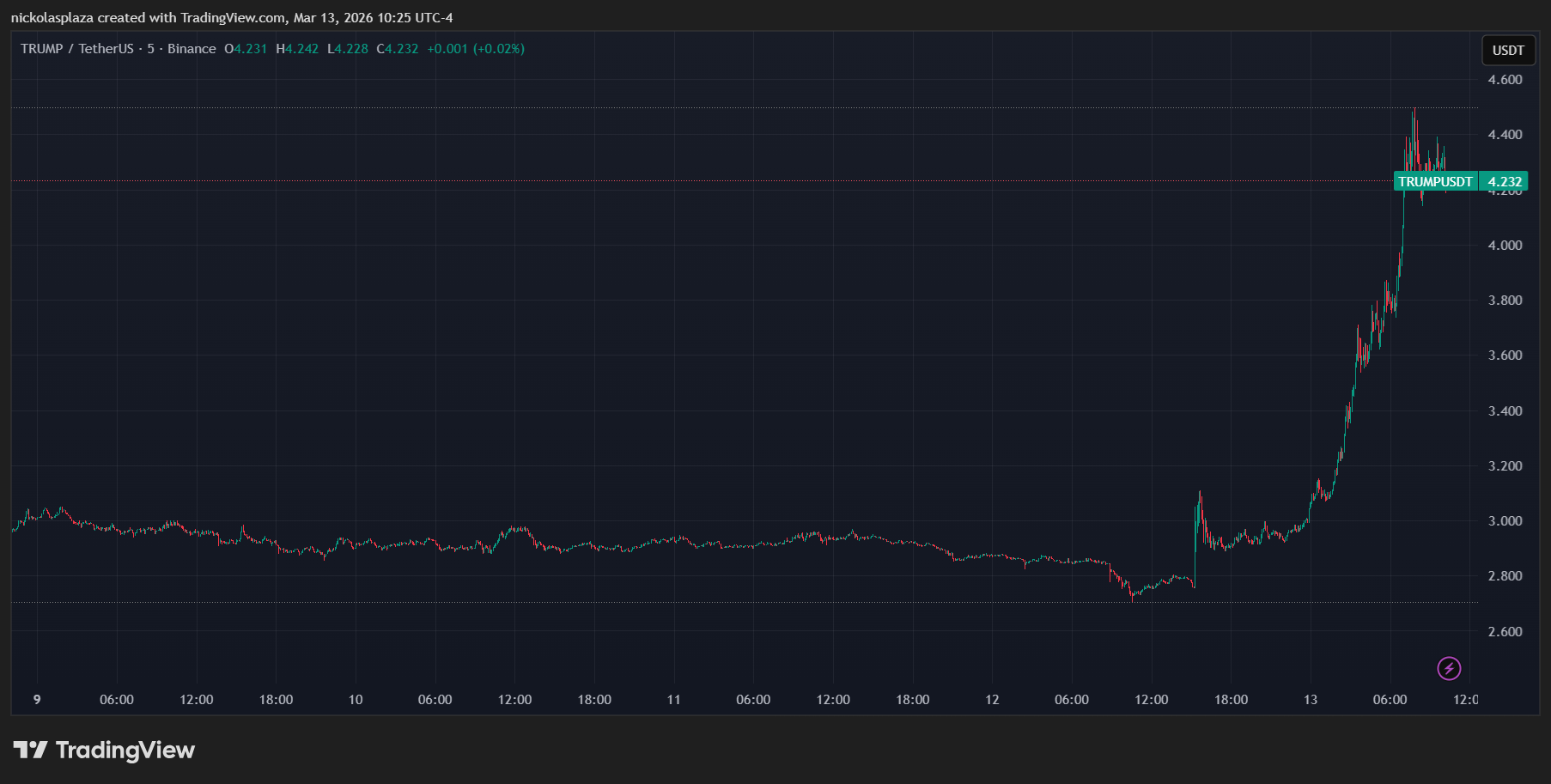 La memecoin oficial TRUMP, asociada al presidente de Estados Unidos Donald Trump, registrรณ un incremento del 54% en las รบltimas 24 horas tras el anuncio de un evento presencial exclusivo con el mandatario.
