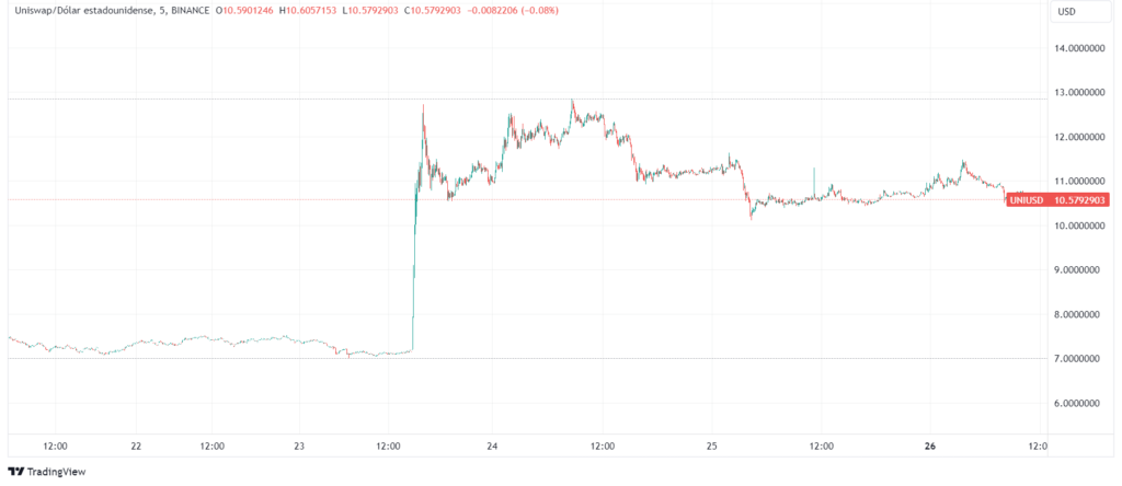 Uniswap, el exchange descentralizado más grande del mercado, tiene entre manos una iniciativa que ha generado un aumento significativo en el precio de su token nativo, UNI.