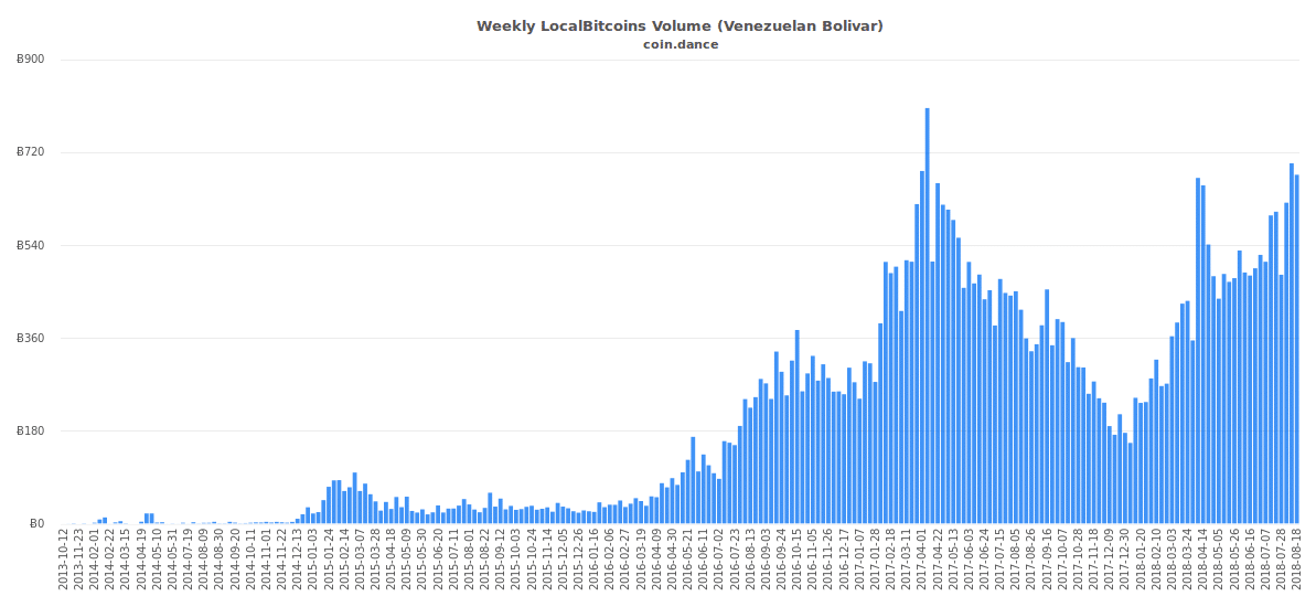 Venezuela atraviesa una importante crisis económica, con un nivel hiperinflacionario significativo y algunos indicadores como búsquedas y descargas parecen sugerir que estos volúmenes de intercambio obedecen al interés de los venezolanos de utilizar la criptomoneda bitcoin como resguardo de valor en medio de la significativa caída del poder adquisitivo de su moneda fiduciaria. Hasta ahora, se han intercambiado 786.817.885 dólares.