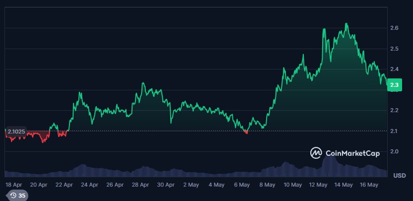 El token alcanzรณ la marca de los 2 dรณlares a comienzos de mayo y parecรญa haber consolidado su cambio de tendencia esta semana.