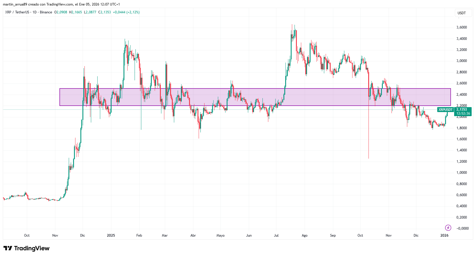 XRP estuvo varios meses lateralizando en esta zona de precios durante 2025.