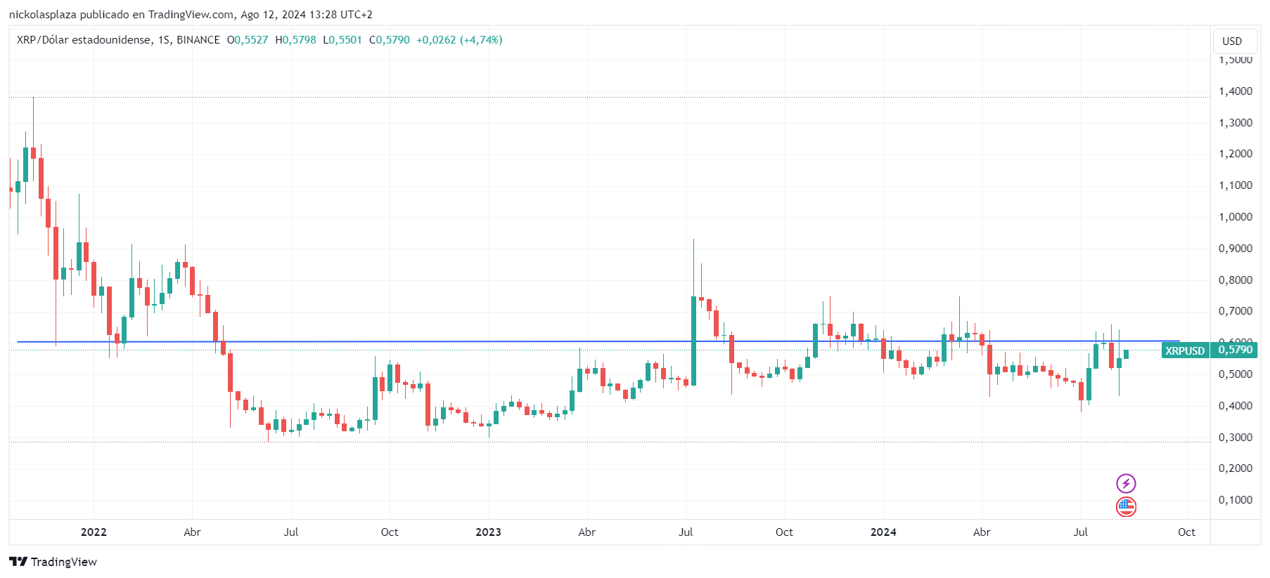 Una resistencia histórica, en este caso 0,60 dólares, es un nivel de precio específico que XRP ha tenido dificultades para superar en el pasado. Es como una barrera invisible que la criptomoneda ha intentado romper varias veces sin éxito. Debido a la psicología del mercado es que se forman estos niveles en el precio de los activos financieros, tal como se explica en la Criptopedia (sección educativa de CriptoNoticias).