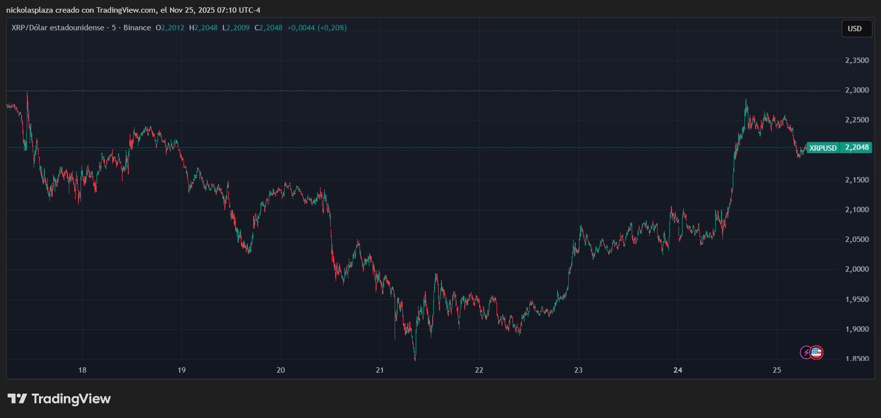 El lanzamiento generó un leve entusiasmo en el activo digital, que tuvo un aumento de 1,18% en las últimas 24 horas y cotiza en 2,20 dólares por unidad, como se aprecia en el gráfico.