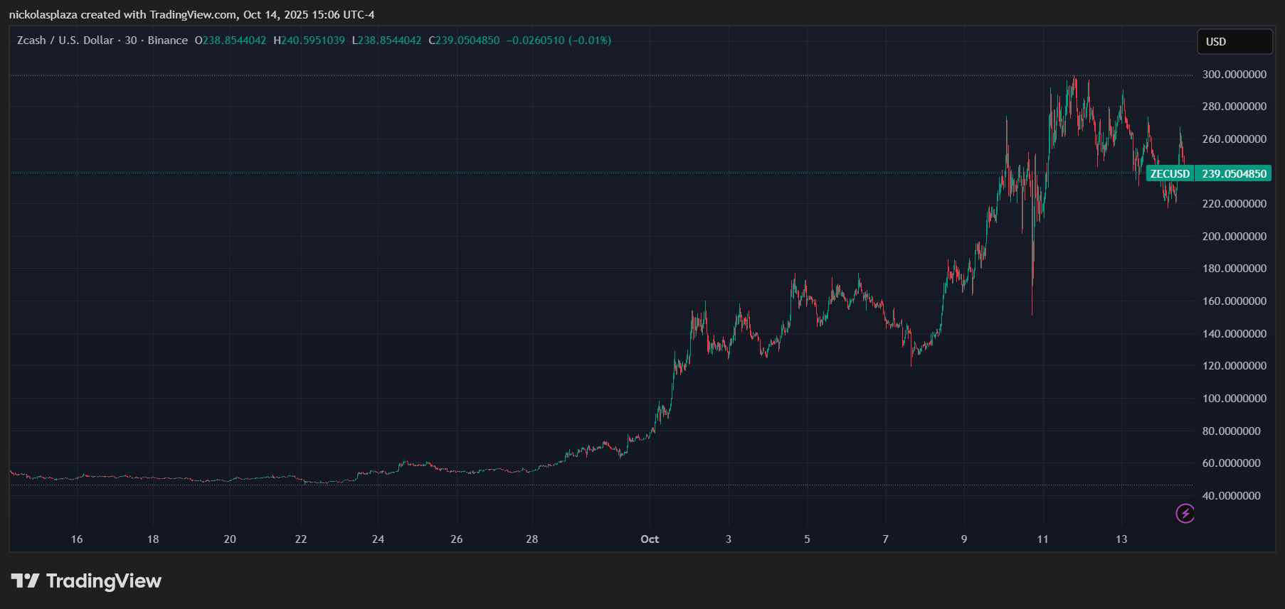 Mientras el mercado lidia con las secuelas del “Viernes Negro” del 10 de octubre de 2025, que vio a bitcoin (BTC) y a las criptomonedas caer, Zcash escaló posiciones.
