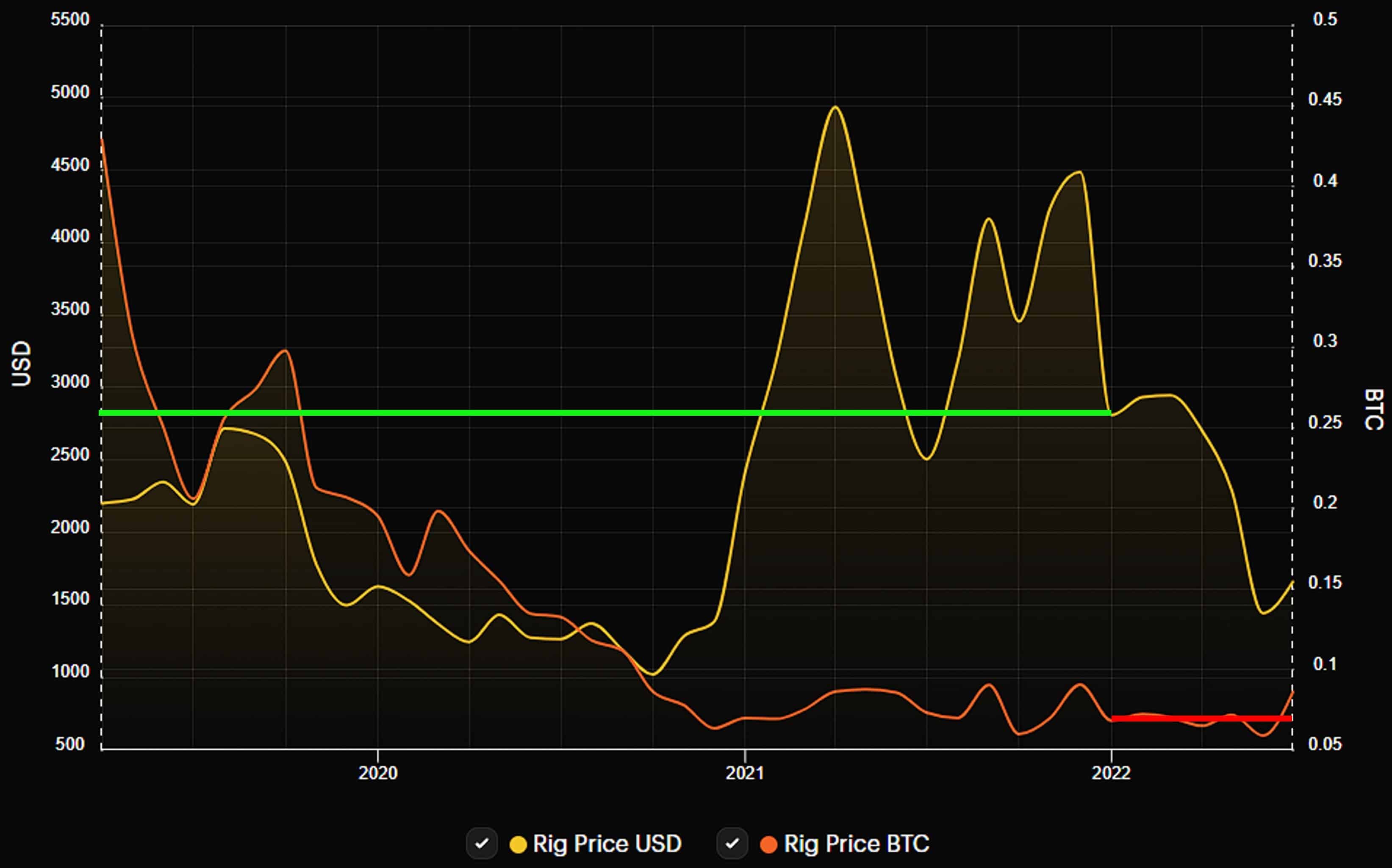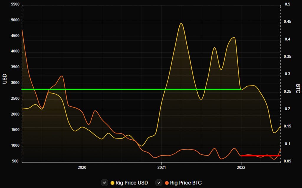El historial de precios de hardware para minar bitcoin en lo que va del 2022 para muchos luce negativo. Sin embargo, este sector tiene dos caras, una es la de la moneda fíat (como el USD o el EUR) y la otra es la de bitcoin (BTC).