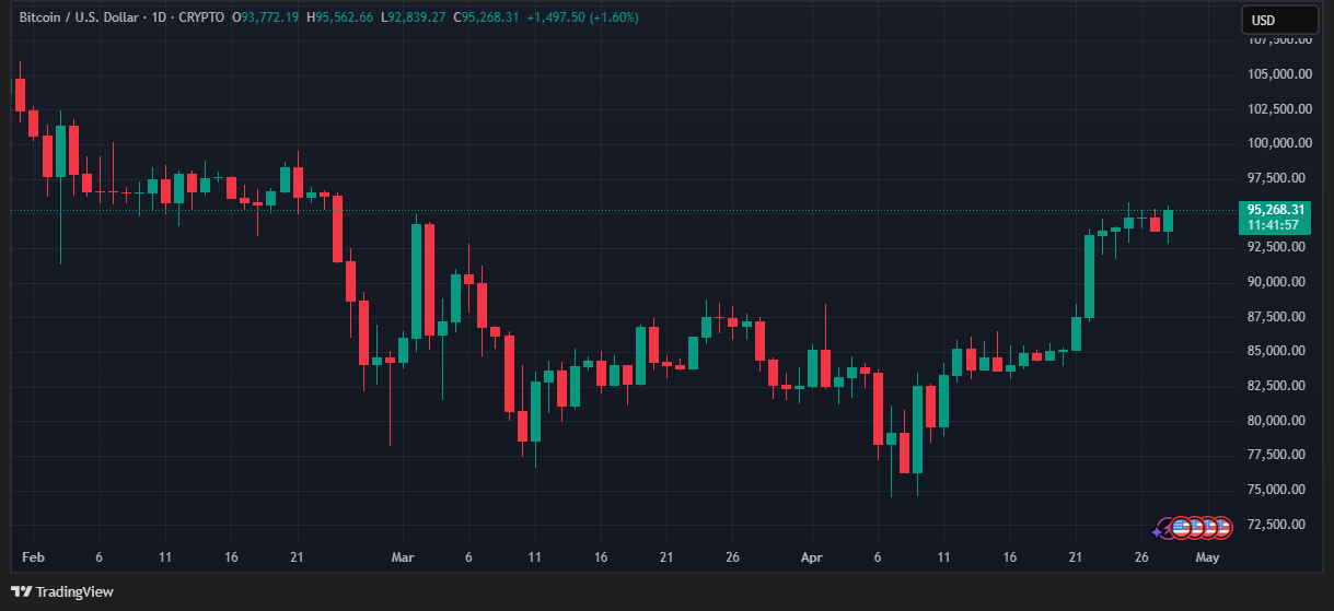 Al momento de este artículo, bitcoin cotiza por encima de los 95.000 dólares.