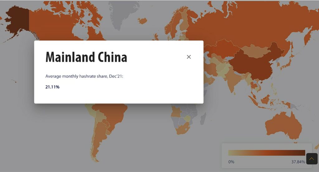 El Centro para las Finanzas Alternativas de la Universidad de Cambridge (CCAF) volvió a incluir a los mineros chinos en sus estadísticas, luego de una actualización reciente a su plataforma web. Para sorpresa de muchos, el poder de minado proveniente del gigante asiático representa el 21,11% del hashrate total de Bitcoin.