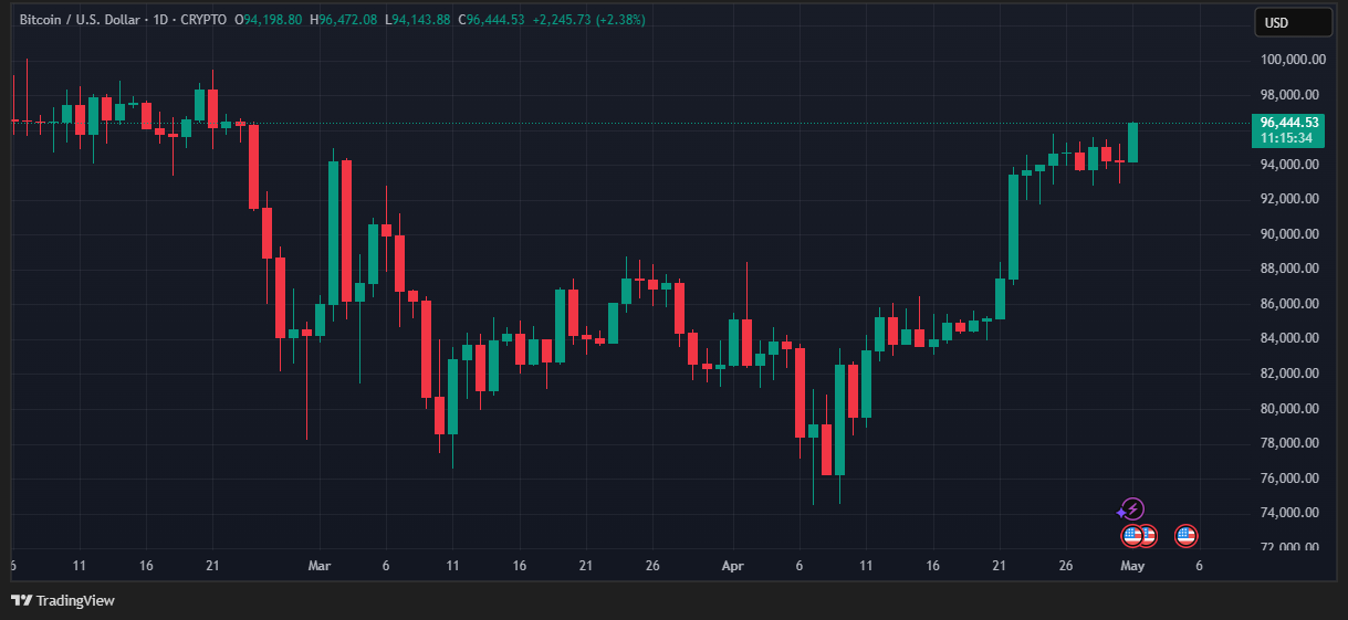 En medio de este panorama, el reciente repunte del precio de bitcoin, que superó los 96.000 dólares ayer 30 de abril por primera vez desde el 24 de febrero pasado, ofrece un respiro a los mineros.