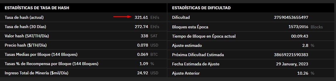 De acuerdo con datos provistos por la compaรฑรญa de servicios de minerรญa de Bitcoin Braiins, es la primera vez que el hashrate en tiempo real de Bitcoin supera ese nรบmero. Precisamente, la mediciรณn que compartiรณ Braiins indica un poder de cรณmputo de 321 EH/s al momento de cierre de esta nota, aunque antes alcanzรณ los 323,5 EH/s.