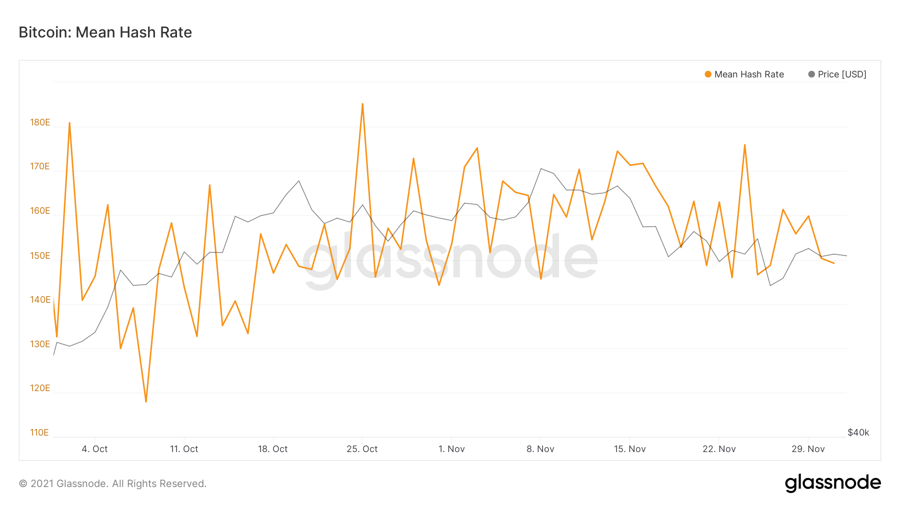 Por su parte, la tasa de hash, o hash rate, el poder de minado de los mineros de la red, tampoco tuvo un aumento sustancial durante el mes de noviembre.