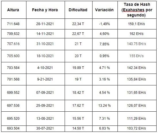 Este último ajuste dejó la dificultad de minado en 22,34 T.