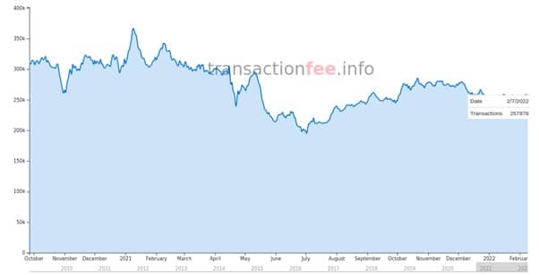 No obstante, en tรฉrminos de cantidad de transacciones, el promedio de este aรฑo no es mayor a los volรบmenes de aรฑos anteriores. El pasado 7 de febrero se procesaron 257.876 transacciones de Bitcoin.