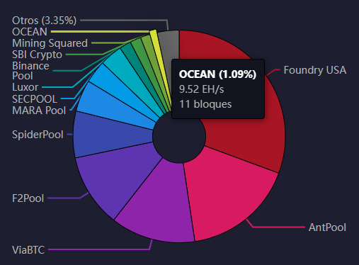 El pool de minería de Bitcoin OCEAN ya representa un poco más del 1% del hashrate en la red Bitcoin. El 24 de junio pasado, el poder computacional del pool se había duplicado en cuestión de horas, alcanzando casi 11 exahashes por segundo (EH/s).