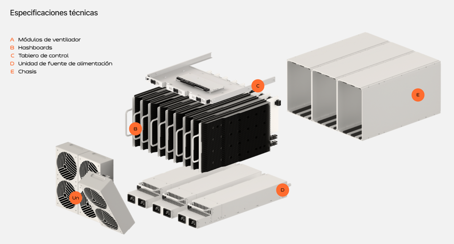 Como reportó CriptoNoticias, Proto Rig posee una densidad de 9,4 kW por pie cuadrado, una eficiencia de 14,1 J/TH por 0,12 kW de gasto energético y, según Proto Mining, la capacidad de albergar 91 TH/s por placa de circuito impreso y hasta 819 TH/s con los 9 hashboards que incluye. El equipo puede consumir hasta Hasta 12.000 W. 4.000 W por fuente de alimentación.
