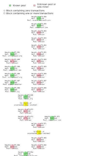 El 11 de agosto, un usuario perteneciente al ecosistema Monero reportó en X que «acaba de producirse una reorganización de 6 bloques, la segunda más grande hasta ahora».